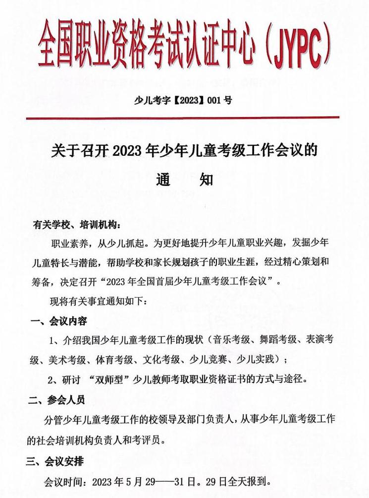 职业素养,从少儿抓起。为更好地提升少年儿童职业兴趣,发掘少年儿童特长与潜能,帮助学校和家长规划孩子的职业生涯,经过精心策划和筹备,决定召开“2023年全国首届少年儿童考级工作会议”。