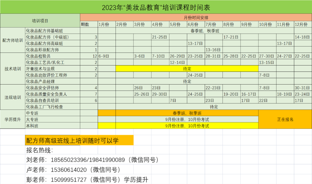 2023年“美妆品教育”培训安排一览表