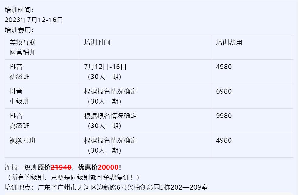 2023年7月12日至16日,美妆互联网营销师培训(第1期)即将正式开始。