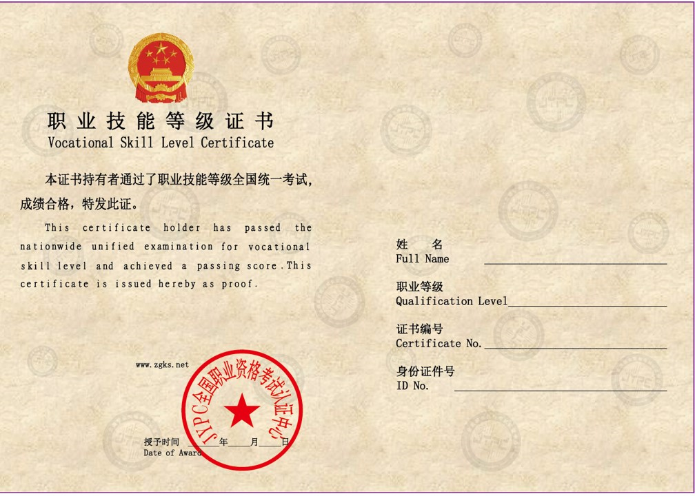 职业技能等级证书,主要面对专科生、中专生、初中生和蓝领工人进行职业能力认证。职业名称后缀有工、员等。例如:电工、钳工、钢筋工、制图员、育婴员、建筑八大员。