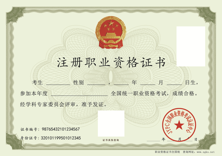 注册职业资格证书内页